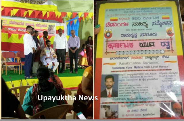 ಪುತ್ತೂರು: ಸವಣೂರಿನ ಹೆಸರಾಂತ ಕಲಾವಿದ ರಾಮಕೃಷ್ಣ ಸವಣೂರು ಅವರಿಗೆ ಶ್ರವಣಬೆಳಗೊಳದಲ್ಲಿ ನಡೆದ 12ನೇ ಅಖಿಲ ಕರ್ನಾಟಕ ಬೆಳದಿಂಗಳ ಸಾಹಿತ್ಯ ಸಮ್ಮೇಳನದಲ್ಲಿ ಕರ್ನಾಟಕ ಯುವರತ್ನ ಪ್ರಶಸ್ತಿ ನೀಡಿ ಗೌರವಿಸಲಾಯಿತು.